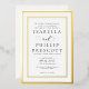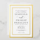 Avec une typographie classique et élégante et un double cadre en feuille d'or, ce faire-part de mariage formel donne le ton à un mariage intemporel. Parfait pour une affaire de cravate noire. Des pièces de coordination de Lea Delaveris Design sont également disponibles dans la suite mariage.