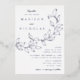 Invitations de mariage botanique avec vos noms et les détails mariages en feuille d'argent divisée par une vigne de feuilles esquissés avec un arrière - plan blanc. Les invitations de mariage élégantes en feuille d'argent se coordonnent avec notre collection de mariages Feuille en cascade.