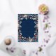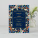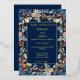 Le design floral bleu marine est parfait pour l'été et le mariage de automne. L'arrière - plan bleu marine est un décor époustouflant pour les fleurs plus douces du bleu, de la rouille et un soupçon d'argent. Le cadre et les lettres en feuille d'or rendent tout pop. C'est vraiment un design étonnant.
