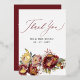 Script simple Elégant Burgundy Blush Floral Mariage Carte de remerciements
