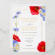 Belle feuille d'or géométrique peinte à la main aquarelle fleurs sauvages d'été dans les tons bleu vert jaune. Fleurs y compris des fleurs de maïs, marguerites, pavots et ne m'oubliez pas. Facile à utiliser modèle avec script de typographie moderne et élégant. Parfait pour un mariage d'été ou de printemps à thème botanique vert sauge unique. OEuvre originale de l'artiste Catherine Sweetman