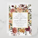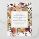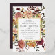 D'élégantes invitations à des mariages fleuris ou des mariages d'automne ou d'hiver présentent vos détails encadrés de roses d'aquarelle, de mamans et de verdure dans des couleurs d'automne rustiques, comme la pêche, l'ivoire, le rougissement, le bordeaux et le vert, avec des garnitures en feuille d'or élégantes. Un design moderne et élégant pour des mariages rustiques chic en automne ou en hiver.