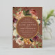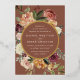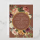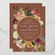 D'élégantes invitations à des mariages fleuris ou des mariages d'automne ou d'hiver vous offrent des détails encerclés de roses d'aquarelle, de mamans et de verdure dans des couleurs d'automne rustiques, y compris pêche, ivoire, rougissement, bordeaux et vert, avec des garnitures en feuille d'or élégantes sur un arrière - plan de rouille de tonalité terrestre. Un design moderne et élégant pour des mariages rustiques chic en automne ou en hiver.
