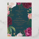 Vous envisagez un mariage romantique, rustique, campagnard ou de grange ? L'arrière - plan vert émeraude apporte vos détails en or et des fleurs en rouge et rose. L'aquarelle fleurie fleurs blanches donnent à vos invitations de mariage un éclat spécial