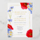 Belle feuille d'or géométrique botanique peinte à la main aquarelle fleurs sauvages d'été dans les tons vert bleu jaune. Fleurs y compris des fleurs de maïs, marguerites, pavots et ne m'oubliez pas. Facile à utiliser modèle avec script de typographie moderne et élégant. Parfait pour un mariage d'été ou de printemps à thème bleu marine unique. OEuvre originale de l'artiste Catherine Sweetman
