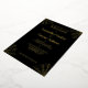 Ces invitations de mariage de style gothique comportent des accents de toile d'araignée en feuille d'or dans les coins avec tous les détails de votre événement en lettres d'or assorties à un arrière - plan noir. L'envers est un noir ordinaire de coordination.