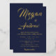 Doté de luxueux motifs dorés et d'une bordure bleu marine profonde, ce design allie élégance classique et romantisme moderne. Parfait pour les mariages officiels, les cravates noires ou les cérémonies du soir, cette invitation peut être customisée avec vos noms, date et détails mariages pour refléter votre histoire d'amour unique.
