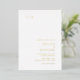 Faire-part de mariage moderne avec une disposition simple et minimaliste avec votre monogramme dans le coin supérieur gauche et vos détails mariages dans le coin inférieur droit. Tous les éléments de conception sont en véritable feuille d'or sur un arrière - plan blanc. Cette faire-part de mariage chic au design minimaliste et élégant se marie bien avec n'importe quel style de mariage contemporain.