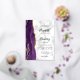 Le bord gauche de cette élégante faire-part de mariage moderne est orné d'une bordure d'aquarelle violette ornée d'une parties scintillant en faux or. Le texte personnalisable combine un véritable script d'écriture de feuille d'or avec des polices en cuivre noir et en italique sur un arrière - plan en marbre gris et blanc. L'envers est assorti d'une agate violette et dorée.