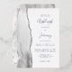 Cette élégante faire-part de mariage moderne est ornée d'une bordure en aquarelle grise et blanche ornée d'une parties scintillant en faux argent. Le texte personnalisable combine écriture manuscrite, copperplate et polices italiques dans un vrai papier argenté sur un arrière - plan blanc. L'envers est assorti d'un design d'agate gris, blanc et argent.