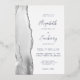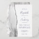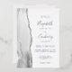 Le bord gauche de cette élégante faire-part de mariage moderne est orné d'une bordure en aquarelle grise et blanche ornée d'une parties scintillant en faux argent. Le texte personnalisable combine écriture manuscrite, copperplate et polices italiques dans un vrai papier argenté sur un arrière - plan blanc. L'envers est assorti d'un design d'agate gris, blanc et argent.