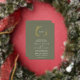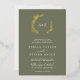 Ce faire-part de mariage monogramme vert foncé de feuille d'or minimal est parfait pour un mariage de saumons. Le design se compose d'une simple silhouette de feuille de verdure en feuille d'or pressée et luxueuse sur un arrière - plan vert olive au style bohème minimaliste de montagne. Personnalisez avec les initiales de la mariée et du marié.