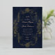 De beaux ornements dorés jumelés à une police or élégante sur un arrière - plan bleu profond créant une invitation de mariage vintage et élégante. Consultez notre magasin pour plus d'articles correspondants.