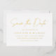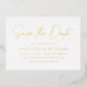 Enregistrez simplement la carte de date avec "Save the Date" dans un script manuscrit en feuille d'or avec un arrière - plan blanc. Personnalisez le moderne enregistrer la carte de date en ajoutant vos noms, date mariage, emplacement du mariage, site Web mariage, etc. Le minimaliste enregistrer la carte de date inverse pour afficher votre photo de fiançailles horizontal préférée.