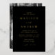 Faire-part de mariage minimaliste et moderne avec vos détails mariages en papier doré avec accents de script de calligraphie. L'arrière - plan noir peut être changé en une couleur de votre choix. L'arrière du faire-part de mariage de feuille affiche votre photo de fiançailles vertical. Conçu pour coordonner avec notre collection de mariages Modern Elegance.