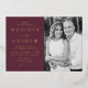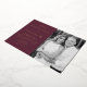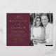 Faire-part de mariage photo moderne avec vos détails mariages sur la gauche du design en feuille d'or avec accents de script de calligraphie sur un arrière - plan de vin. Personnalisez l'avant de l'invitation en ajoutant vos noms, les détails du mariage et la photo verticale du fiançailles. L'arrière de l'invitation offre de l'espace pour le texte et les photos supplémentaires. Conçu pour coordonner avec notre collection de mariages de feuille Modern Elegance.