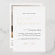 Ajoutez un peu de brillance à vos invitations de mariage avec de l'or véritable, de l'argent ou de l'or rose ! L'avant de la carte présente le texte faire-part de mariage dans la typographie serif classique avec une touche de calligraphie stylisée et détaillée avec un vrai papier d'aluminium. Le verso de la carte présente une photo personnalisée du couple heureux, ainsi qu'un code QR pratique et une section dédiée aux détails mariages. Notre design simple noir et blanc est intemporel et polyvalent, adapté à tout thème et saison. Vous pouvez facilement choisir entre l'or, l'argent et l'or rose feuille de l'outil ci-dessus. Visitez la collection liée sur cette page pour coordonner les articles ou visitez notre magasin pour plus d'invitations de mariage.