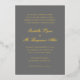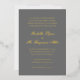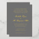 Invitations de mariage traditionnelles avec un design simple et intemporel avec le nom de la mariée et du marié dans une calligraphie élégante. Tout le texte sur le devant est en feuille d'or réelle sur un arrière - plan gris moyen. Cette Faire-part de mariage de luxe en feuille d'or de style classique est parfaite pour un mariage formel.