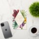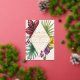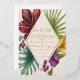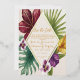 Beau cadre en diamant tropical avec des fleurs et des éléments botaniques exotiques est parfait pour votre carte de destination Enregistrer la date. Ce chariot présente des couleurs tropicales luxuriantes sur une véritable feuille d'or pour ajouter une touche d'élégance.