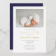 Invitation En Aluminium Marine moderne Blue Gold Script Photo Boy Baptême