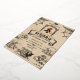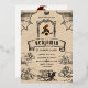 Cette invitation sur le thème médiéval présente un fond semblable à un parchemin orné d'illustrations antiques de dragons, de chevaliers et de créatures mythiques. Une arcade centrale ornée encadre un petit dragon stylisé perché au-dessus d'un soleil noir ou d'un vide. Le texte est élégamment stylisé dans une police serif rappelant la calligraphie, avec une bannière proclamant l'âge du célébrant d'anniversaire. L'esthétique globale est fantaisiste et aventureuse, parfaite pour une célébration sur le thème de la fantasy. La palette de couleurs est atténuée, utilisant des tons sépia et des bruns pour renforcer l'aspect antique. L'invitation détaille une fête le 14 août 2025 à 16 heures. Les informations de RSVP sont également incluses.