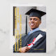 Célébrez votre jalon avec cette invitation à la feuille d'or graduée, avec un modèle photo diplômé et design de typographie moderne pour un look élégant et contemporain. Parfait pour tous les diplômés du secondaire ou de l'université, cette classe d'invitations mélange l'esthétique simple et minimale avec un gros texte audacieux pour une sensation frappante mais élégante. Conçu comme un grand invitation de fête et un faire-part classique, son style minimaliste et simple assure une célébration intemporelle et sophistiquée.