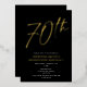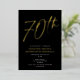 Cet invitation de fête moderne de 70e anniversaire dispose d'un arrière - plan noir chic avec écriture en feuille d'or surélevée et typographie moderne blanche plate. Le script dit "70ème". Toutes les couleurs sont entièrement et facilement personnalisables. Vous pouvez même ajouter une photo à l'arrière ! Il suffit d'utiliser "outil de conception" dans le menu déroulant de personnalisation. Le papier peint est disponible en or, argent et or rose. Choisissez l'impression de papier à papier pour ajouter le facteur wow à vos prochaines invitations !