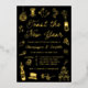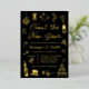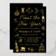 Celebrate the new year with this modern, gold foil doodle New Year’s Eve party invitation. Hand-drawn illustrations of champagne bottles, confetti, stars, streamers, and more shine in gold foil against a black background. “Toast the New Year” appears in a coordinating script for a glamorous, high-contrast look. The back features clinking champagne glasses with a handwritten “Cheers” message for a stylish finishing touch. Add your party details to create a chic invitation perfect for an elegant New Year’s Eve celebration with cocktails and a midnight champagne toast.