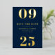 Invitation En Aluminium Modern Navy et Gold Bold Date Enregistrer la date