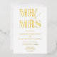 Blanc audacieux moderne M et Mme typographie sur opacité noire superposer photo chic mariage avec véritable feuille d'or, parfait pour élégante, luxe mariage, thème de mariage d'automne et d'hiver., télécharger 1 photo