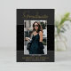 Une carte de faire-part de graduation photo unique, avec des éléments de design d'élégant script de style manuscrit. Le mot "Graduate" et le nom des finissants dans le papier à feuilles réelles (les options de couleur de papier sont or, argent et rose). La photo des finissants est bordée d'une bordure blanche et d'une garniture ondulée décorative. Le design est complété par un arrière - plan dans les tons gris platine foncé et noir royal. Le dos de la carte offre un espace de texte personnalisé pour ce diplômé spécial. Pour voir d'autres articles comme celui-ci, visitez mon magasin ici à "www.Zazzle.com/LakeViewCardCo". Merci