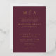Faire-part de mariage minimaliste et moderne avec vos initiales monogrammes et les détails mariages affichés en papier doré avec accents de script de calligraphie. L'arrière - plan vin-violet peut être changé en une couleur de votre choix. Conçu pour coordonner avec notre collection de mariages Modern Elegance.