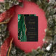 Le bord gauche de cette élégante faire-part de mariage moderne est orné d'une bordure en aquarelle vert émeraude, recouverte d'une parties scintillant en faux or. Le texte personnalisable combine écriture manuscrite, copperplate et polices italiques en feuille d'or réelle sur un arrière - plan non noir. L'envers est assorti d'une agate vert émeraude et or.