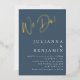 Contemporain Nous faisons Mariage élégant Dark Dusky Blue et Gold Foil Invitation