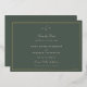 Le Formal Classic Frame Delicate Sage Sprigs Wedding Save the Date est un design intemporel et élégant, parfait pour un faire-part mariage sophistiqué. Doté d'un arrière - plan vert sauge foncé, cet aménagement classique et formel comprend des monogrammes pour le couple, placés de chaque côté d'un croquis botanique délicat avec deux sprigs fleurs sauvages. Un cadre raffiné bordé de feuille d'or renforce l'esthétique traditionnelle d'inspiration vintage, ce qui en fait l'idéal pour les mariages classiques, élégants ou classiques. La riche palette de couleurs vert sauge muet apporte une touche de charme d'inspiration nature, tandis que les délicats détails floraux évoquent un sentiment de simplicité romantique et de beauté botanique. Parfait pour les couples qui aiment la papeterie mariage minimaliste mais intemporelle, cela économise la carte date allie magnifiquement le raffinement moderne avec des éléments design classiques.