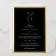 Noir & blanc intemporel et élégant faire-part de mariage feuille monogramme avec bordure en or et feuille de papier.