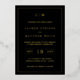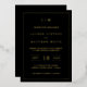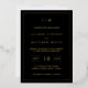 Faire-part de mariage simple avec un design moderne et élégant avec votre monogramme à deux lettres en haut, une mise en page audacieuse et vos détails entourés d'une fine bordure. Tous les éléments de conception sont imprimés avec de la feuille d'or réelle sur un arrière - plan noir. Une Faire-part de mariage chic et design qui conviendra à un couple minimaliste.