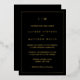 Simple Faire-part de mariage en noir et or, design moderne et élégant, avec votre monogramme à deux lettres en haut et vos détails entourés d'une fine bordure. Ce dessin est imprimé avec de la feuille d'or réelle. Cette Faire-part de mariage de style minimaliste conviendra à une mariage à thème sombre et moody.