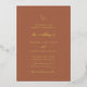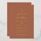 Faire-part de mariage en feuille d'or de style traditionnel avec un design simple avec votre monogramme avec des mots d'accent dans un script élégant sur un arrière - plan couleur terre cuite / orange brûlé / rouille. Cette faire-part de mariage classique est idéale pour un mariage formel.