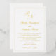 Faire-part de mariage traditionnelle avec un design simple et classique avec vos deux monogrammes initiaux et vos noms dans une calligraphie élégante à l'intérieur d'une mince bordure. Tous les éléments de conception sont imprimés en papier doré. Cette Faire-part de mariage de luxe au design intemporel est parfaite pour un mariage formel.