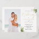Cet élégant faire-part de mariage feuille de verdure en feuille d'or véritable peut être personnalisé avec vos photos spéciales et détails de célébration mis en typographie chic avec vos initiales monogrammes au verso. Conçu par Thisisnotme©