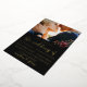 Beau et élégant faire-part de mariage photo floral moody. Cette belle invitation est une façon chic de faire connaître aux invités votre prochaine cérémonie de mariage. Un joli script de calligraphie de feuille d'or "le mariage" est assis sur un arrière - plan noir foncé avec la photo du couple, et un motif de fleurs botaniques rouge et blanc couvre le dos de la carte noire.
