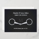 Cette invitation comporte une illustration d'un mors de filet à anneau libre argenté qui est mis en valeur avec une feuille d'argent, appropriée pour un mariage à cheval, une fête dans votre ferme, ou un événement pour une entreprise équestre ou une association caritative.
