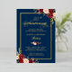 Personnalisez cette "Invitation en feuille de métal véritable Rouge Bourgogne Fleurs Bleu Marine Cadre Or" pour amener votre invitation d'anniversaire de mariage au niveau supérieur. Tout le texte et le cadre sont réalisés avec une véritable feuille métallique et c'est parfait pour ajouter une touche de luxe.