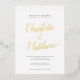 Ce design faire-part de mariage chic et simple présente un script de calligraphie moderne en feuille d'or, un arrière - plan blanc classique et une typographie élégante. Ce design élégant et simple est un choix fabuleux pour n'importe quel style de mariage. Vous pouvez customiser encore plus ce design en ajoutant une photo ou un texte supplémentaire à l'arrière-plan. Le pétrole est disponible en or, argent ou or rose et brille absolument ! Sélectionnez de vraies invitations de mariage pour ajouter ce facteur wow! !