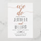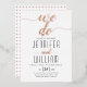"We do" véritable feuille d'or rose faire-part de mariage avec belle écriture cursive style calligraphie manuscrite. Une motif géométrique poussiéreuse et blanche couvre le dos.
