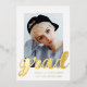 Faire-part d'Invitation Gold Foil de la graduation de photo moderne. Personnalisez-le avec vos photos et le nom de la jeune fille, le nom de l'école et l'année de diplôme. Remplacez le texte d'information du grad au verso par vos détails ou tapez votre propre texte personnalisé. Une carte de faire-part photo moderne et élégante avec du texte en feuille d'or. Une façon agréable de partager vos réalisations au lycée ou à l'université avec votre famille et vos amis.