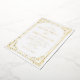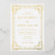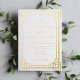 Invitations de mariage art déco moderne avec vos détails mariages en papier doré encadré par un cadre art déco en feuille d'or. Conçu pour se coordonner avec notre collection de mariages Art Déco Moderne.