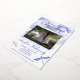 L'orchidée aquarelle bleu clair est élégante en fond sur vos invitations élégantes de quinceanera bleu clair. Des libellules fantaisistes bleues et argentées entourent votre photo et les détails de la fête de quinceanera en script. Cette carte est idéale pour une célébration de quinceanera de printemps ou d'été. Les couleurs sont polyvalentes pour un thème de couleurs bleu bébé ou bleu ciel. Des libellules en feuille d'argent et des libellules bleues se superposent à votre photo de Mis Quince.