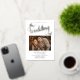 C'est une élégante invitation de mariage en papier doré. Il y a une photo sur le devant et une autre sur le dos. C'est parfait pour un mariage ou une invitation "save the date"